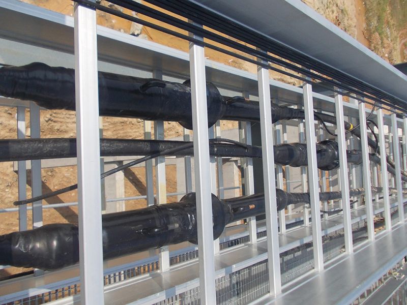 終端應力錐采用三元乙丙橡膠(EPDM)高壓注橡成型,由彈簧錐托頂緊于環(huán)氧套管內(nèi)錐形壁上,克服了應力錐由于材料老化帶來的彈性松弛、應力錐與電纜外半導電層接觸不良等弊病,以確保終端長期安全穩(wěn)定運行;終端為全干式結(jié)構(gòu),杜絕了泄露問題;產(chǎn)品結(jié)構(gòu)緊湊、重量輕、體積小、大大減少了安裝空間;終端與電纜的連接方式為插拔式,安裝簡便,易于維護;插板式GIS終端還適用于電力電纜與變壓器的連接,取消了油/油套管或油/氣套管(象鼻子),節(jié)省了大量空間;短型插拔式GIS終端加裝出線桿后,又適用于與長式GIS終端配套的GIS設(shè)備。